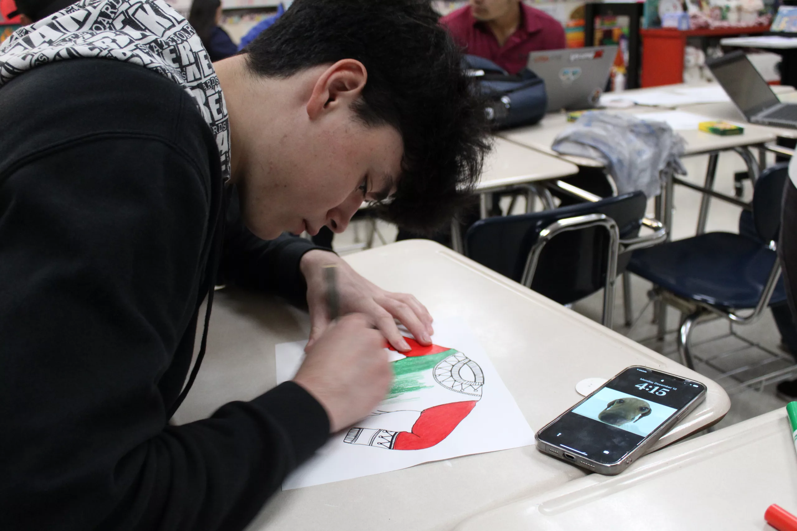 English 1301 students end their semester in this course by decorating Christmas Sweaters.