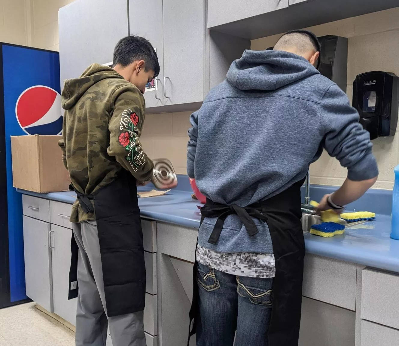 Food Science students collaborate in cleaning the utensils used in cooking Burritos....