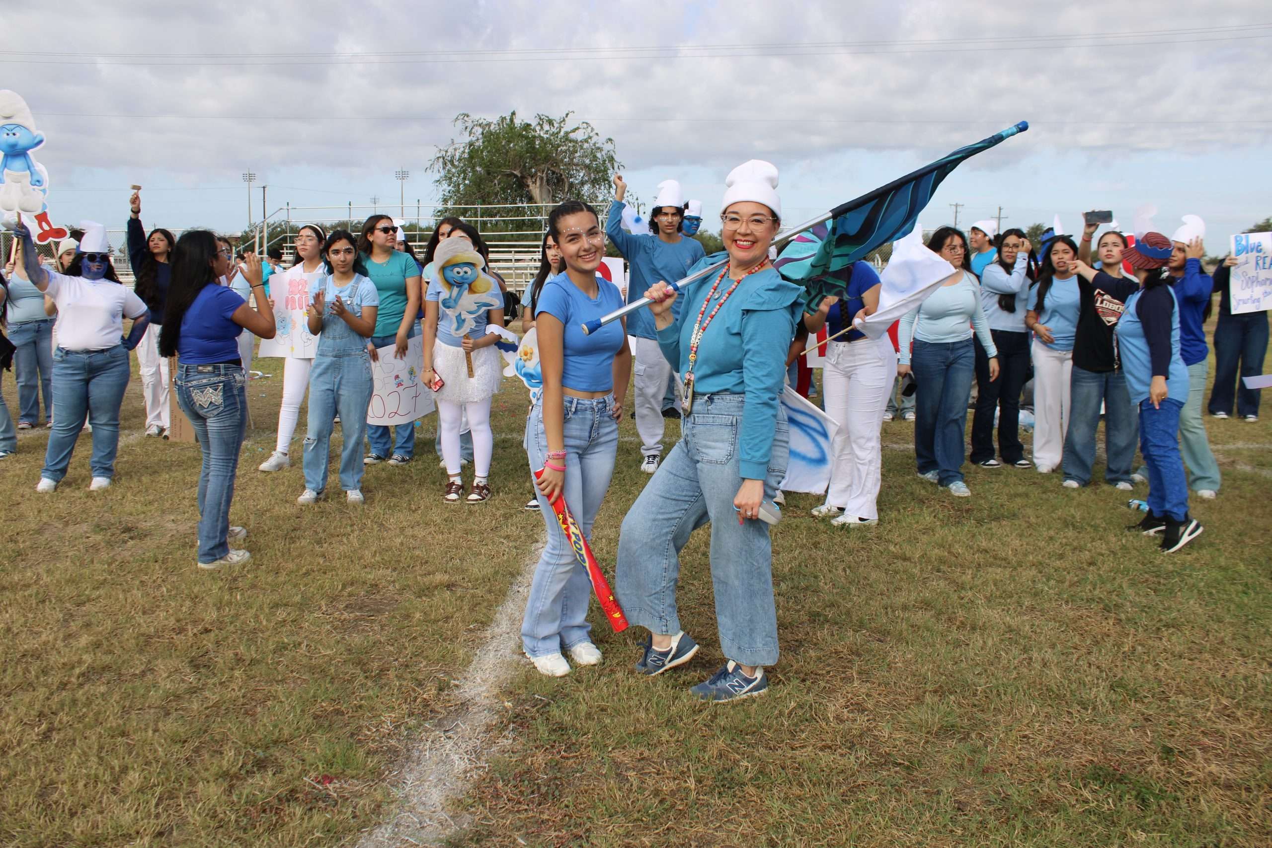 Mrs. Ochoa and Kimberly V. pose to show their spirit for the Pep-Rally