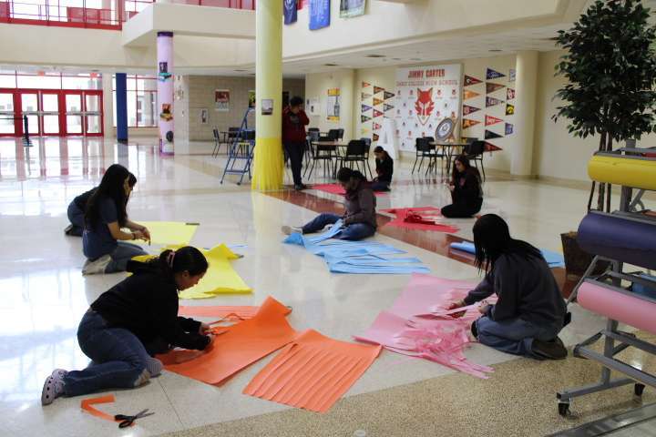 Students help out with Fall Mercado preparations...