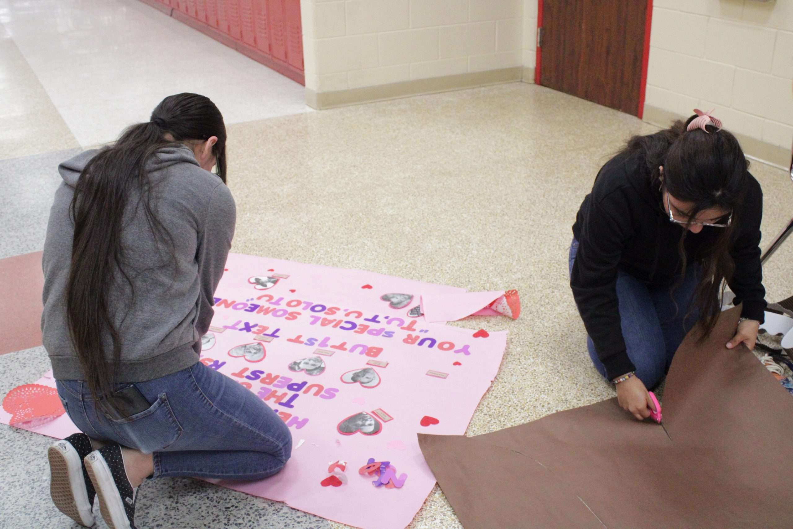 Student Life Highlights: Sophomore students assist in setting up February bulletin board.