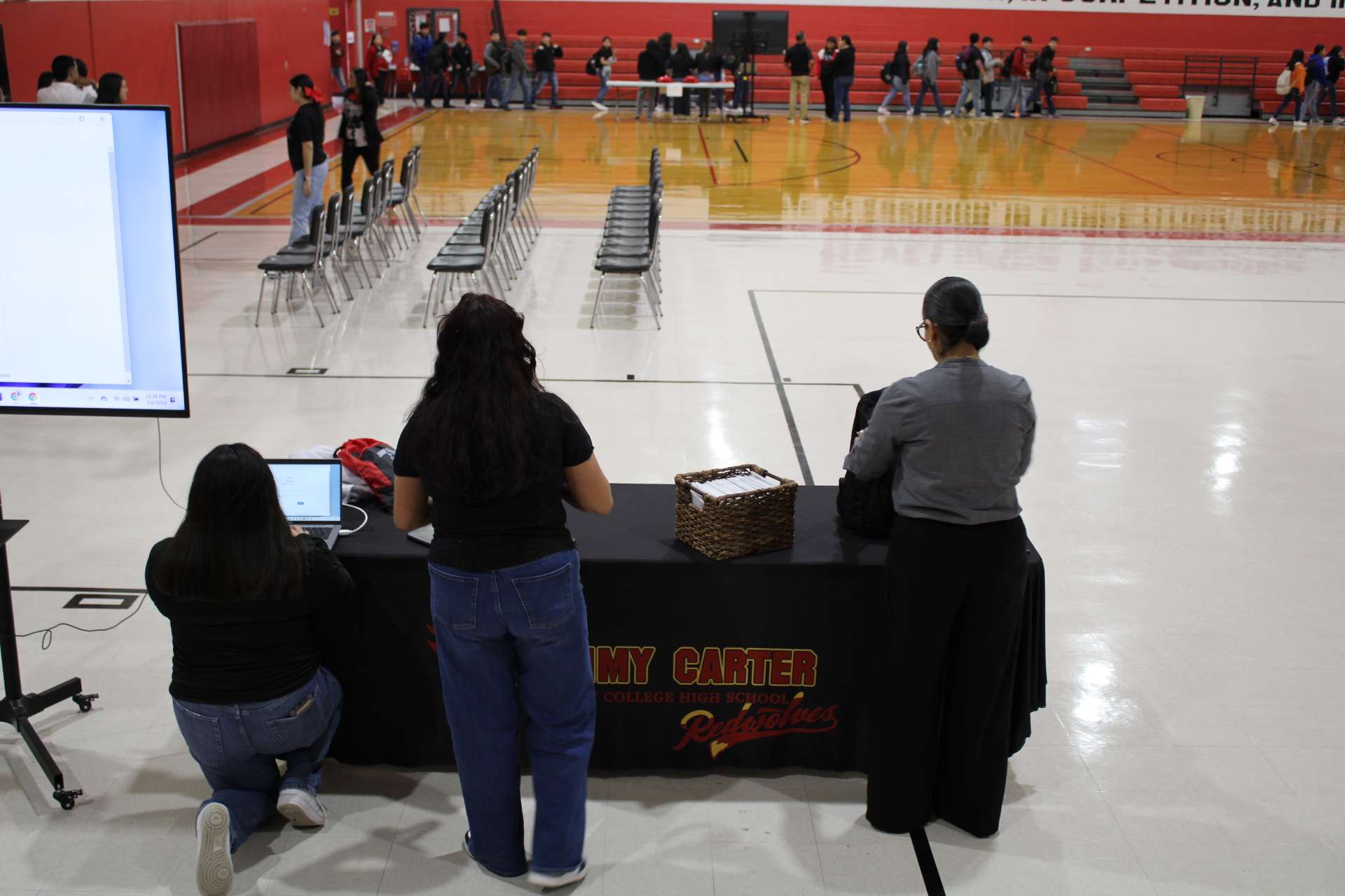 Mrs. Gomez leads the exciting first day of 8th-grade recruitment for Jimmy Carter ECHS....