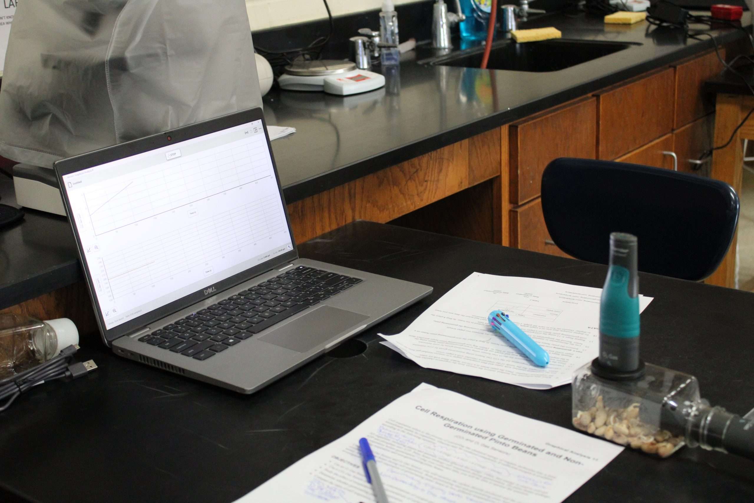 Students learn about cellular respiration thorough germinating beans....