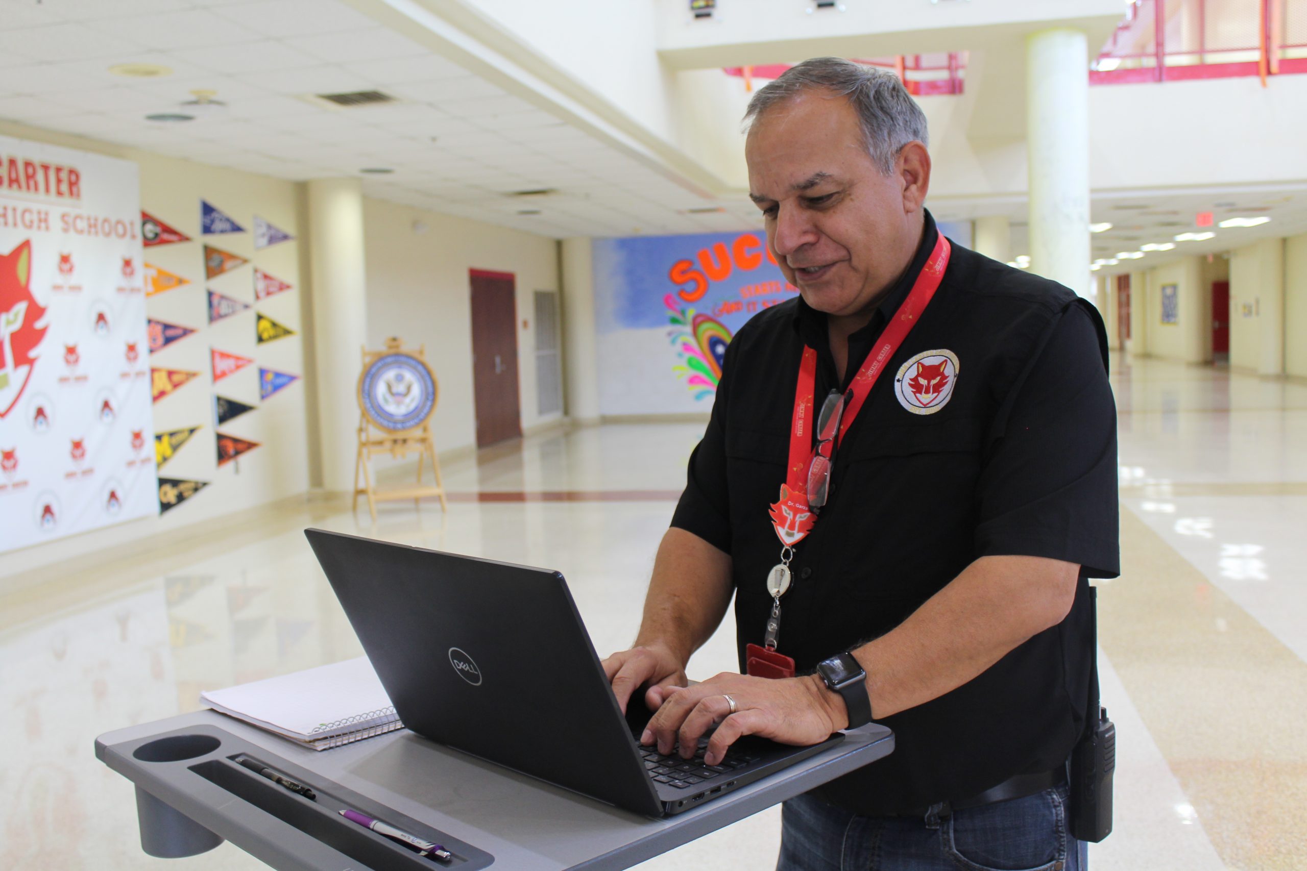 With a cheerful wave and a bright smile, Mr. Steckler heads back to class. His energy reminds students and staff alike that learning can always be joyful....