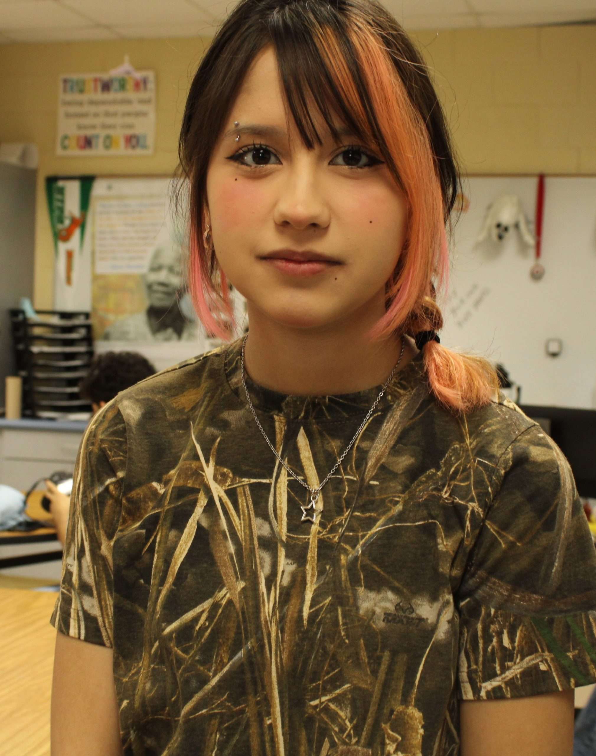Denisse M. wears Camouflage to show Christmas Spirit